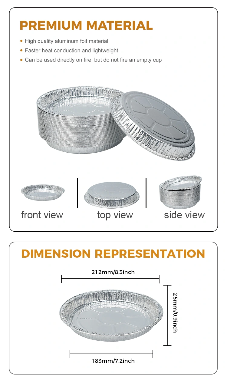 För vänner som gillar utomhusaktiviteter kan 7-9 tum pizza pan silver aluminiumfoliebehållare inte bara användas för att hålla mat utan också kasseras direkt (välj en miljövänlig bortskaffningsmetod), inget behov av att bära smutsiga bordsartiklar, som är både hygieniska och miljövänliga.