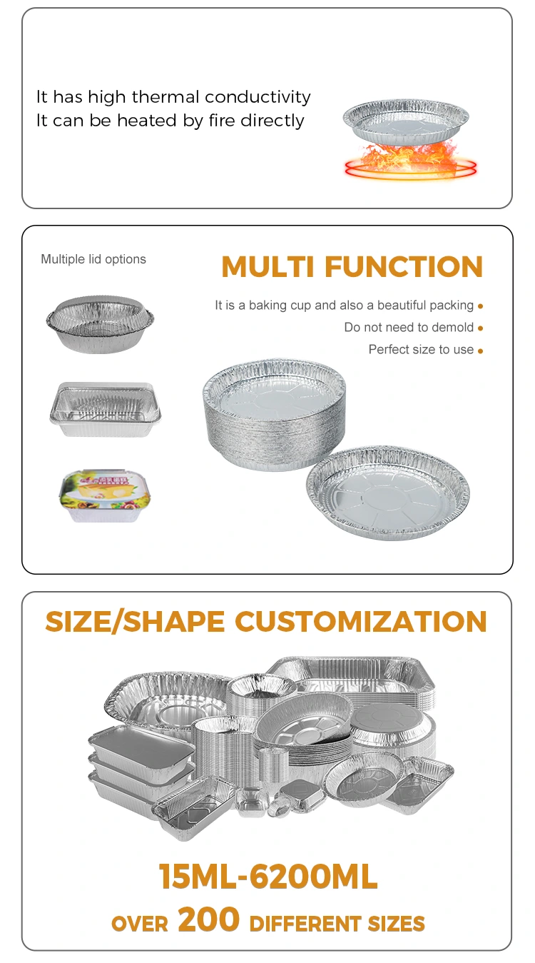 I familjesammanträden är 7-9 tum pizza pan silver aluminiumfoliebehållare utan tvekan en oumbärlig hjälper. Det kan användas för att servera huvudrätter som stekt kyckling och grytor, eller som en engångs serur för att hålla kvar mat, vilket är bekvämt och snabbt, vilket minskar rengöringsbördan efter måltiderna. På grund av dess lätta och enkla portabilitet är den dessutom idealisk för utomhuspicknick.