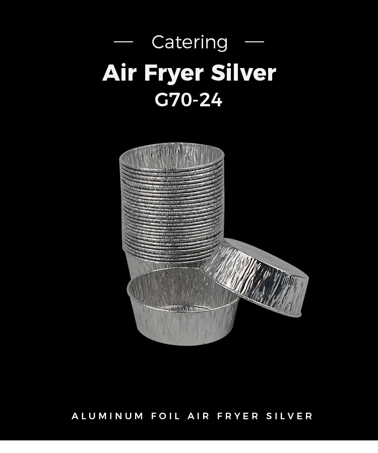 Denna kakbakning kopp silver aluminiumfolie matbehållare är noggrant anpassad av Yunchu Factory, tillverkad av högkvalitativt silveraluminiumfolie, modellnummer G70-24. Det är utformat för att servera små delar av mat, till exempel snacks och geléer, som perfekt tillgodoser de moderna konsumenternas behov för små delar av olika livsmedel. Det är bekvämt att njuta av ensam eller dela med andra.