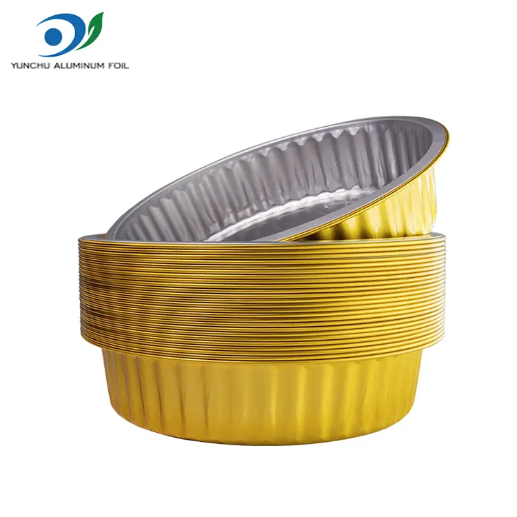 Yunchu aluminiumfolie leverantör engångsgrillfack gyllene runda aluminiumfolie containerscan ska appliceras på platsen för takeaway -distribution, cateringförpackningar, gruppmåltider, kallkedjetransport, matkylning, etc., denna disponibla grillplatta gyllene runda aluminumfolie kan laddas och appliceras på alla slags mat, etc., denna disponibla grillplatta gyllene runda aluminumfoli Aluminiumfoliebox och aluminiumfolie LID COMBINATION BESTÄLLNING, en enda MOQ på 1000 stycken, med utmärkt hög och låg temperaturmotstånd, lämplig för applicering på olika platser.
