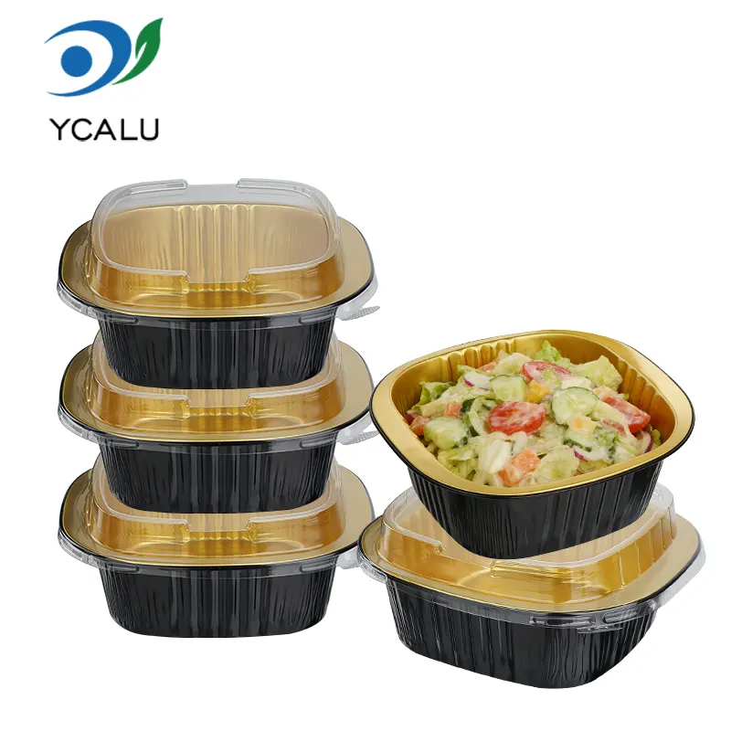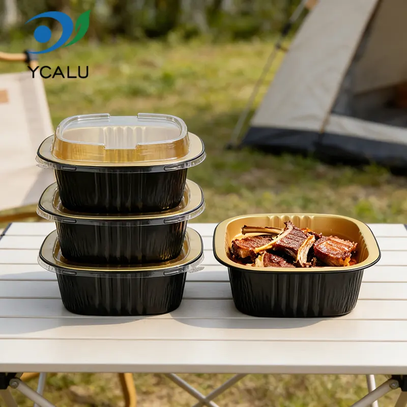 Engångs binaural fyrkantig låda svart guld aluminiumfoliebehållare
