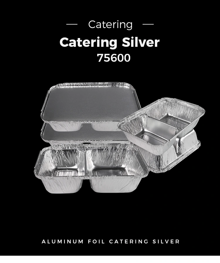 Ytan på engångsfacket Fastmat Silver Aluminiumfoliebehållare har en viss glans, vilket ger människor en enkel och ren visuell upplevelse. Samtidigt har den en regelbunden form och kan väl anpassa sig till olika förpacknings- och transportkrav, såsom stapling och placering.