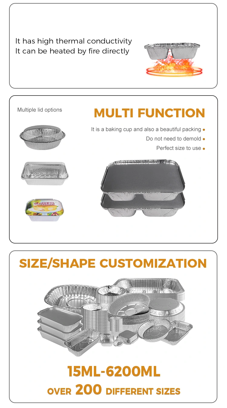 Det engångsfacket Snabbmat Silver Aluminiumfoliebehållare med papperslock har god värmehållning och kan bromsa förlusten av matvärme. På hösten och vintern har det en god effekt på bevarande av varm mat, till exempel nylagt varma grytor i den, vilket kan upprätthålla temperaturen på måltiden under en viss tid, så att konsumenterna kan njuta av varm mat när de äter.