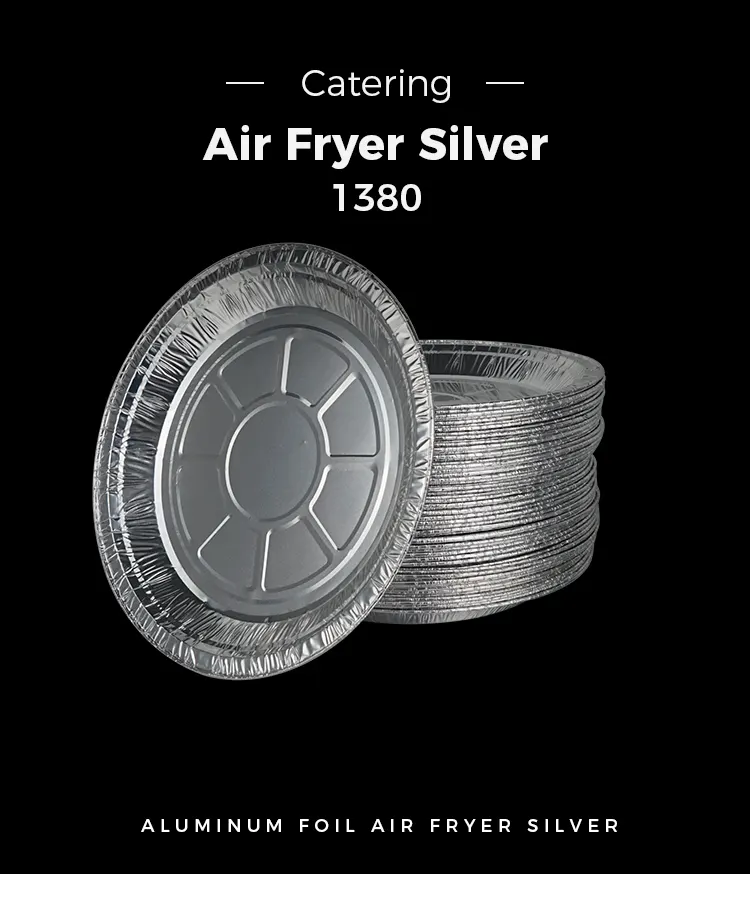 Yunchu aluminiumfolie engångsskiva luftfritös Silver aluminiumfolie behållare Livsmedelsklassad högrenhet aluminiumfolie har inga föroreningar och lukt, och uppfyller de nationella standarderna för matkontaktmaterial. Det kan vara direkt i kontakt med råa och tillagade ingredienser - oavsett om det är marinerad grill, uppfriskande rostade grönsaker eller mjuka, klibbiga och söta rostade desserter. Det finns ingen chans att skadliga ämnen infiltrerar. Den silverblanka aluminiumfolien har utmärkt värmeledningsförmåga. Skivdesignen i ett stycke passar de flesta storlekar på airfryer. Finns i 6-tums, 7-tums och 8-tums storlekar, den är lämplig för små portioner och att dela med hela familjen. Det finns inget behov av upprepade justeringar. Den kan enkelt placeras i frityrkorgen, vilket gör att materialets fördelar kan utnyttjas fullt ut.