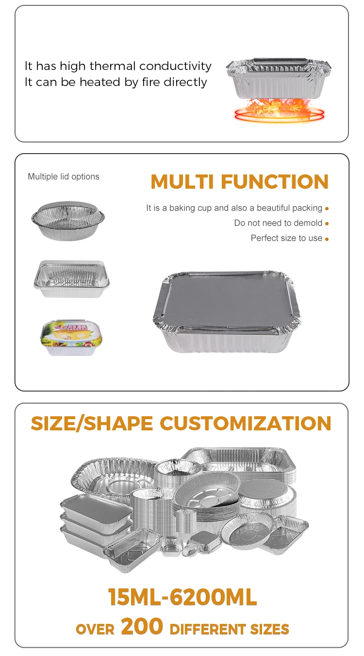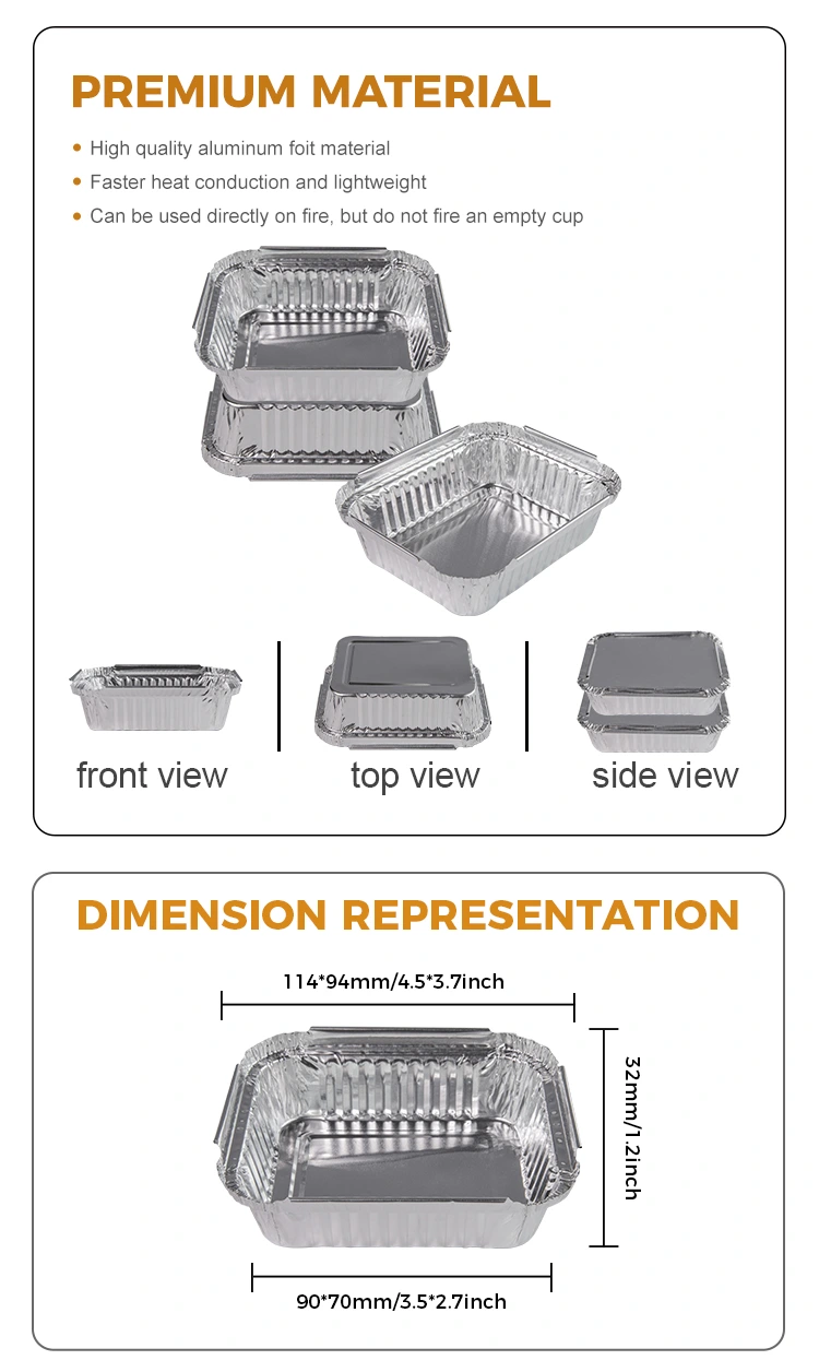 Dessutom är denna engångsgrill lunchlåda silver aluminiumfoliebehållare också extremt säker, eftersom den kan användas normalt under en öppen låga utan att oroa sig för brandrisker alls. Samtidigt ger dess utmärkta temperaturmotstånd och tätning också en garanti för säker transport av mat, vilket gör att konsumenter och kunder kan använda den med mer förtroende.