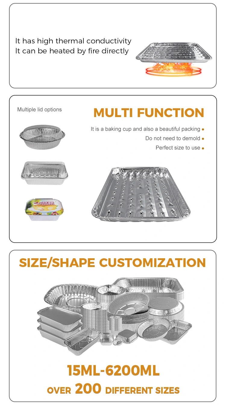 Yunchu aluminiumfolie leverantör engångsgrillpanna är lämplig för utomhus- och inomhusgrillning, denna bakplatta har en unik håldesign, ingen anledning att oroa sig för olje rökproblem. Utformningen av hålen möjliggör snabb värmeledning och mer enhetlig uppvärmning, vilket undviker lokal överhettning av traditionella bakbrickor. Oavsett om det är camping i vildmarken eller en familjesamling, ger denna griddle en ren, hälsosam miljö för din grill. Yunchu aluminiumfolie engångsgrillpanna är tillverkad av kontaktmaterial för matkvalitet för att säkerställa hygien och säkerhet under grillprocessen. Det högkvalitativa aluminiumfoliematerialet är inte bara hållbart utan har också en slät yta och ingen lukt, vilket gör att du kan njuta av din måltid utan att oroa dig för några hälsorisker. Denna bakpanna har utformats med varje detalj i åtanke, från utseende till praktik.