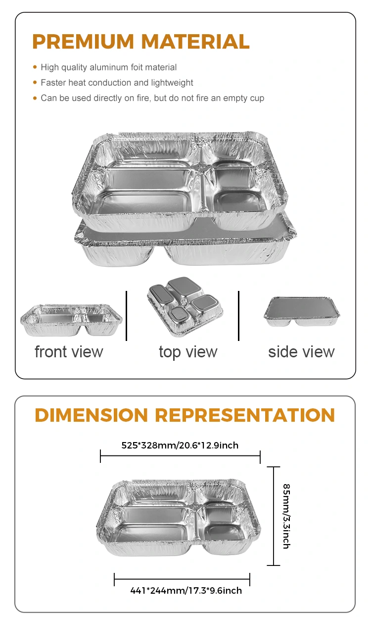 Engångsuppfödning av multi-suppartment Snabbmat silver aluminiumfoliebehållare med papperslock fungerar bra på hösten och vintern på grund av deras goda värmehållningsegenskaper. Oavsett om det är en nygjord varm gryta eller annan varm mat, kan det upprätthålla en lämplig temperatur under lång tid, vilket gör att konsumenterna kan njuta av varm mat.