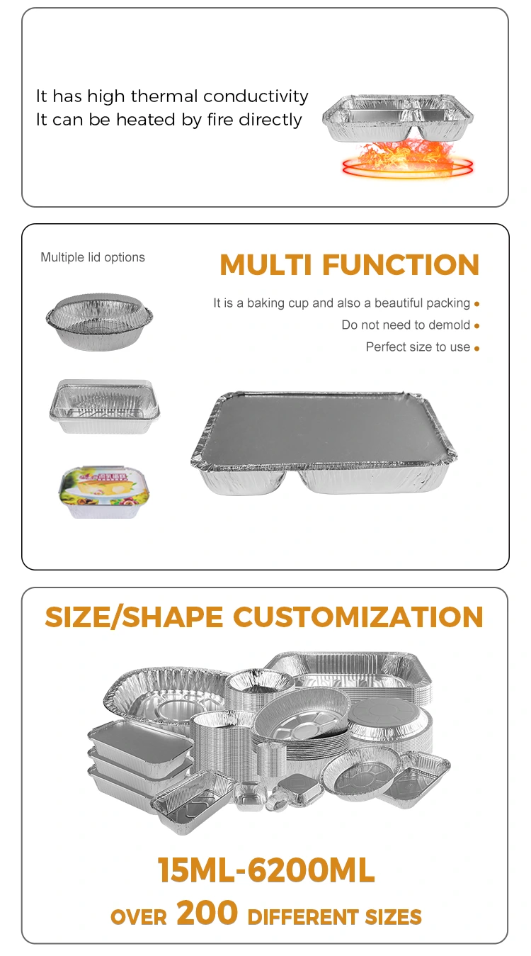 Denna aluminiumfolie lunchlåda har inte bara termiska isoleringsegenskaper, utan kan också kopplas ihop med ett aluminiumfolie -lock, vilket ytterligare förbättrar produktens praktiska. Dessutom tillhandahåller vi också anpassade logotjänster för att förbättra varumärkesbilden och förbättra kundminnespunkter.