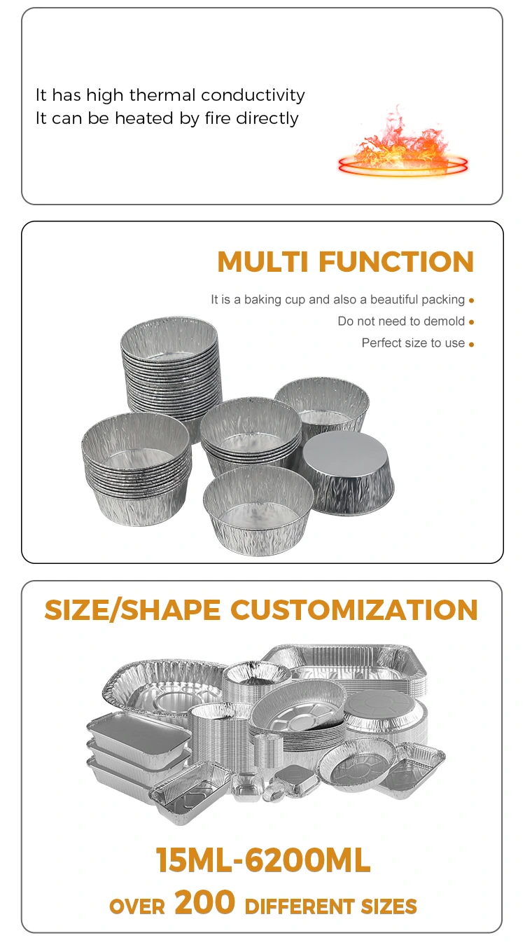 Yunchu Aluminiumfolieleverantörens engångsluftfritös silveraluminiumfoliebehållare i silver är designad för engångsbruk, vilket helt eliminerar den tråkiga uppgiften att diska efter måltider, vilket sparar tid och energi; aluminiumfoliematerialet är återvinningsbart, miljövänligt och belastningsfritt, med hänsyn till bekvämlighet och gröna koncept. Litet och utsökt utseende, staplingsbar förvaring tar inte plats, vilket enkelt sparar köksförvaringsutrymme. Oavsett om den används hemma eller på företag, kan den här engångsbehållaren av silver, rund aluminiumfolie lösa problemet med att lagra och använda dips med högkvalitativa material och genomtänkt design, vilket gör varje matlagning och varje sammankomst mer bekymmersfri och bekvämare.