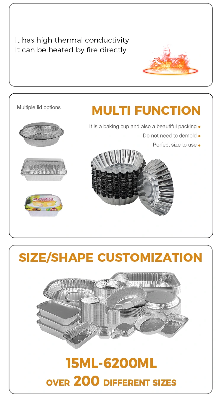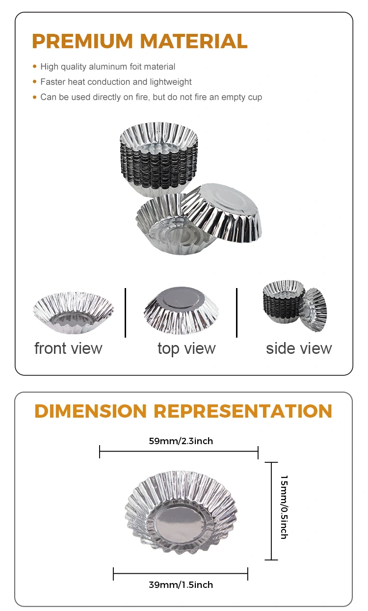 Yunchu aluminium folie ägg tårta toast bakning silver aluminium folie mat behållare produkt grossist designad för äggträder och andra desserter. Den är tillverkad av aluminiumfolie med livsmedelskvalitet, som är säker och giftfri, och har god värmeledningsförmåga, vilket säkerställer att maten värms jämnt och har en bättre smak under bakningsprocessen. This egg tart tray is versatile and suitable for various occasions such as family gatherings, business events, etc. Easy to remove the mold at high temperature when using, after the finished product is completed, easy to remove the film, non-stick bottom, do not damage the shape, thicken and harden the material that is not easy to deform, good pressure resistance, say goodbye to the trouble of washing the pot and easily protect the pot, isolate oil stains without cleaning after use, smooth bottom is not easy to Skor och håll fast vid botten, non -stick mat är lätt att laga, botten är slät, tål -20 ° C ~ 300 ° C, kan värmas över en öppen låga och formen värms jämnt.
