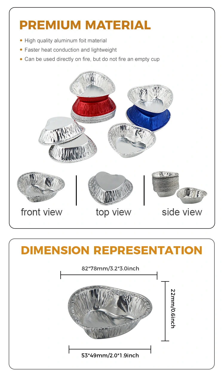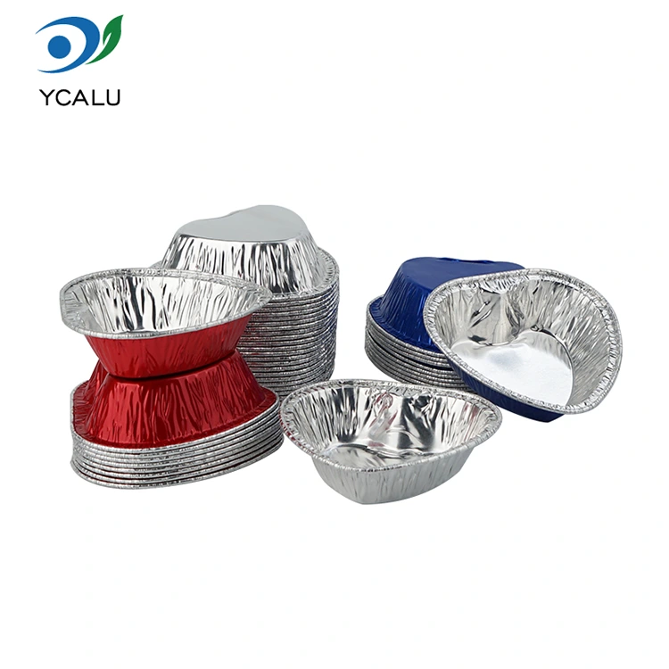 Yunchu Aluminium Foil Suppliers hjärtformade airfryer silver aluminiumfoliebehållare är inte bara ett matlagningsverktyg, utan också en bärare av en känsla av ritual i livet. Genom att bryta den monotona designen hos traditionella behållare ger den smarta hjärtformade konturen en romantisk atmosfär. Oavsett om det är en utsökt dekoration för dagliga måltider eller en kreativ presentation för semestermiddagar, kan den få mat och skönhet att gå åt båda hållen och injicera ömhet i varje måltid. Material är kärnan i sinnesfrid. Vi väljer noggrant ut livsmedelsklassad rå aluminiumfolie för att göra den, som inte har någon lukt och inga skadliga rester. Den har klarat flera säkerhetstester, vilket gör direktkontakt med mat säkrare. Aluminiumfoliematerialet har utmärkt värmeledningsförmåga, vilket gör att värmen från fritösen kan penetrera jämnt in i varje del av maten, låser in färskhet och juice under grillning och bakning och behåller matens ursprungliga smak. Den är inte lätt att deformera eller gå sönder, har både flexibilitet och soliditet och är lämplig för luftfrityrarens arbetsmiljö med hög temperatur. Klarar enkelt olika matlagningsbehov. Produkten tål ett brett temperaturområde från -20°C till 220°C. Den kan läggas i airfryern för att göra äggtårtor och andra delikatesser, och kan även användas för ugnsbakning, kylning i kylskåp och uppvärmning av ångkokare. En enhet kan användas med flera funktioner för att låsa upp flera matlagningsscenarier. Det släpper inte ut skadliga ämnen vid höga temperaturer och kan blockera lukten av mat när den är kyld, med hänsyn till både praktisk och säkerhet. Ytan på silveraluminiumfolien har specialbehandlats och är full av lyster. Det förbättrar inte bara produktens konsistens, utan reflekterar också värme, vilket gör att ingredienserna kan värmas upp jämnt samtidigt som näringsförlusten minskar. Den bakade maten är krispig på utsidan och mör på insidan, med en attraktiv färg. Den hjärtformade designen är inte bara vacker utan passar även in i luftfritösen. Den är stabil och skakar inte, och är lätt att ta tag i. Det finns inget behov av tråkig rengöring efter användning, bara släng den, vilket sparar dig besväret med rengöring och minskar bördan av ett snabbt liv.