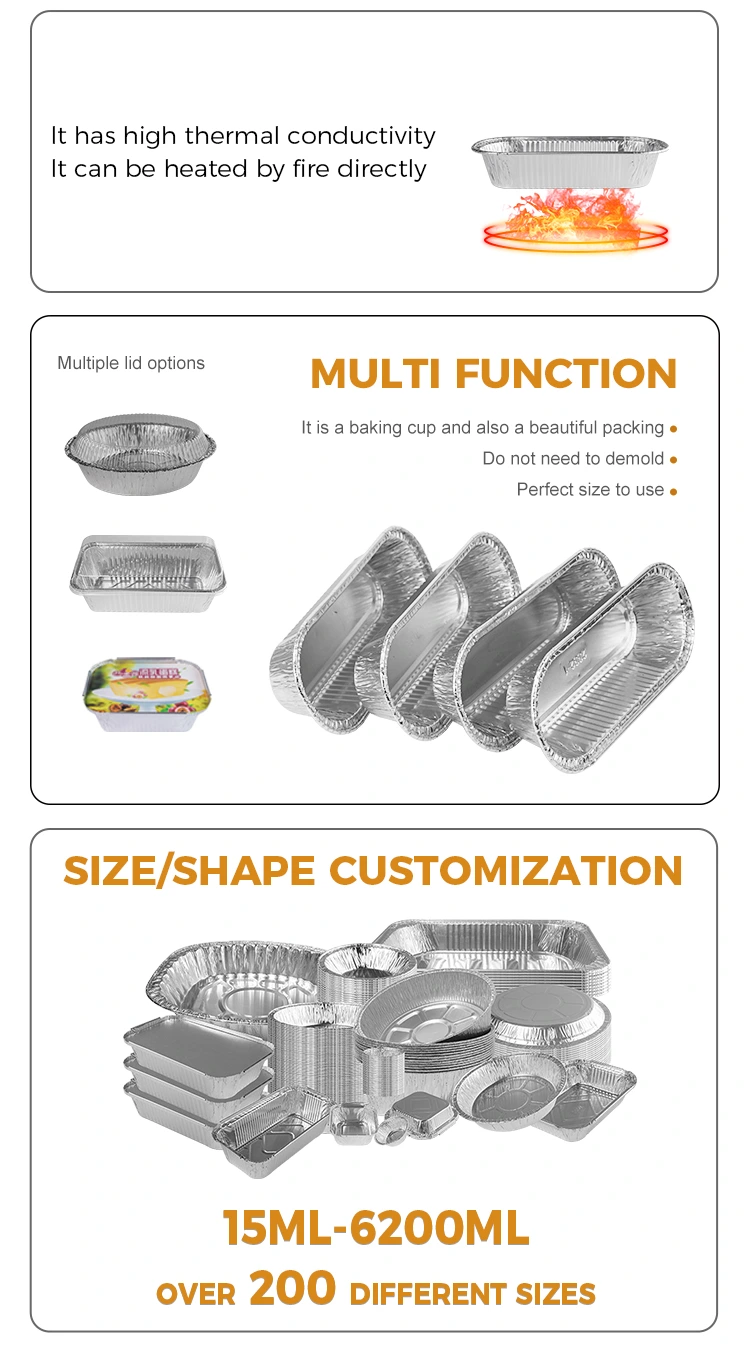 Funktioner: Hälsosamma och miljövänliga, utan ren, lämpliga för att göra olika hem- och bakdelikatesser, idealiska för hem och bageri. Aluminiumfoliematerialet är säkert och hygieniskt, behöver inte rengöras och är mycket lämplig för användning i luftfrukter.