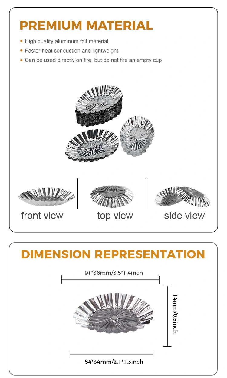 Yunchu aluminiumfolie Leverantörens spetsar vaniljsås Silver aluminiumfolie matbehållare, icke-halk kopp kroppsdesign, kopp kropp med halkist konsistens, ökar friktionen, förhindrar att glida. Spetskoppmunndesignen kan vikas och lagras, vilket är bekvämt och praktiskt. Flera design med stor kapacitet, engångsanvändning, inget behov av att rengöra, brett utbud av användningsområden, lämpliga för bakade äggträder, kakor, äggula-chips, skålkakor och andra delikatesser. Egg TART -brickorna i Yunchu Aluminium Foil -leverantörer har passerat den tyska ERP -certifieringen, EU SGS -certifieringen och ISO9001 -certifiering av kvalitetshanteringssystem. Vi använder hälsosamma, miljövänliga matlagningsmaterial för att säkerställa säkerheten och icke-toxiciteten för våra produkter. Dessa material är inte bara förnybara utan också miljövänliga, vilket återspeglar våra stränga krav i livsmedelssäkerhet och vårt åtagande att sträva efter högkvalitativa standarder för våra totala produkter.