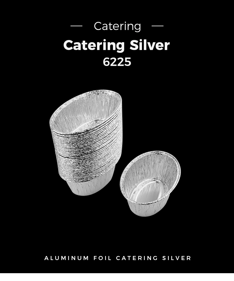Yunchu aluminiumfolie Leverantör oval ångad kaka silver aluminium folie mat behållare modell 6225 är en aluminiumfolie behållare som kan användas för kommersiellt och hushållsbruk, som kan låsa upp mer användning, såsom bakade ägg, bakade ostron, äggtarter, kakor, etc., och kan också användas som såsar, doppar, små drift Material, integrerad gjutning, väggen är lika slät som en spegel, som är både vacker och praktisk, den hemmande designen skadar inte dina händer, och en mängd olika specifikationer och storlekar uppfyller dina olika behov.