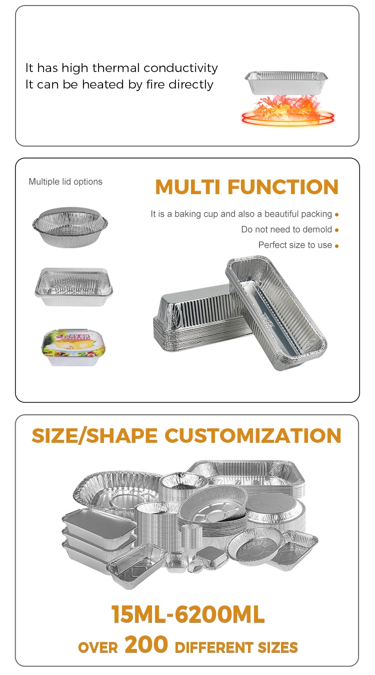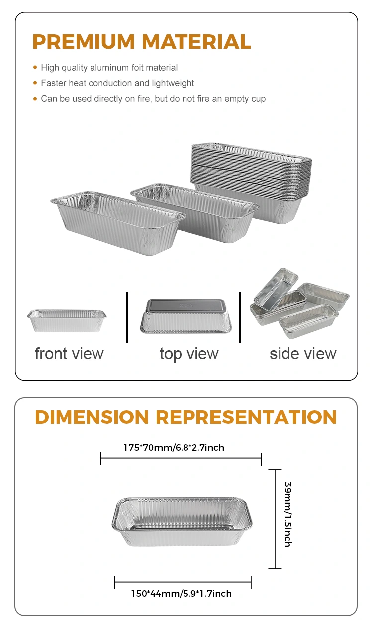 De rektangulära brödfackens silveraluminiumfoliebehållare som tillhandahålls av Yunchu Aluminium Foil-leverantören är tillverkad av matkvalitetsmaterial och är lämplig för en mängd olika applikationsscenarier. Denna produkt är särskilt lämplig för grillning och bakningsändamål, till exempel att göra långa bröd eller bakning. Oavsett om det är för kolgrillning eller som en takeaway -leveranslåda, är det perfekt för användning.
