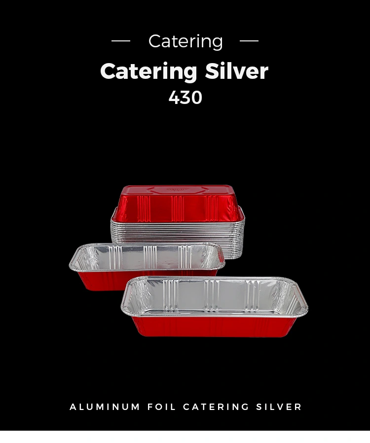 • Rektangulär röd bageri catering Silver aluminiumfoliebehållareRektangulär röd bageri catering Silver aluminiumfoliebehållare