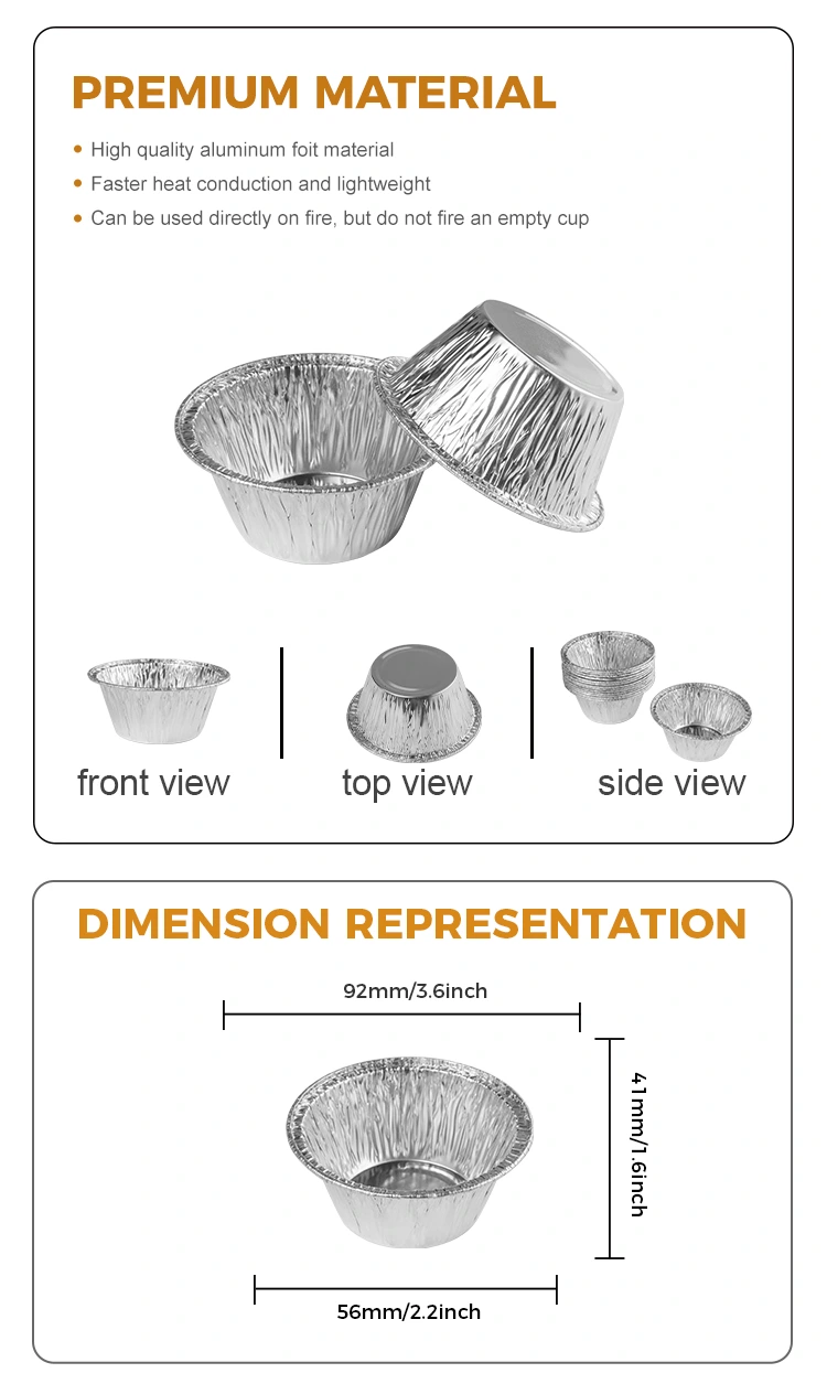 Funktioner: Runda bakkaka Silver aluminiumfolie matbehållare är hälsosam och miljövänlig, behöver inte rengöras, är lämplig för att göra olika hembakade snacks och är också en måste-ha produkt för bagerier, aluminiumfolie är säkert och hygieniskt, ingen rengöring, kan bakas över en öppen flamma, sammanträda för att göra mat.