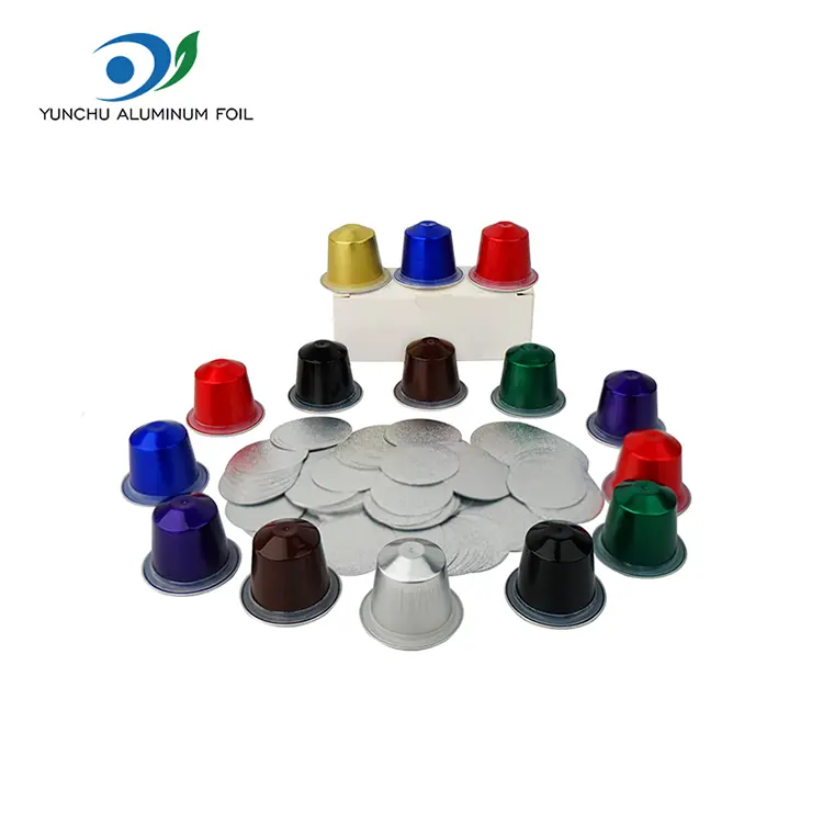 Tesilicone-Seal Empty Coffee Capsule Produced by China Yunchu Aluminium Foil Wholesale är tillverkade av livsmedelskvalitetsaluminiumfolie, som uppfyller kraven på miljöskydd och livsmedelskvalitetsteknik. Värmeseglat aluminiumfolie lock tillhandahålls för enkel tätning efter uppvärmning, stark kompatibilitet, kompatibel med de flesta kaffemaskiner på marknaden, Yunchu kan producera kaffekapslar gjorda av belagda aluminiumfolie, kaffekapsuler är gjorda av präglade aluminiumfolie, med god tätning och utmärkta barriäregenskaper, vilket kan förhindra alla kontaminering och smaklopp.